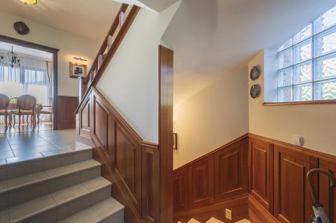 A ház 991 m2-es, déli irányba lankás, kissé lejtő építési telekre épült, beton sávalapra, a főfalak 30-as Porotherm blokktégla-fallal, monolit vasbeton tetőszerkezettel. A teljes dokumentáció, műszaki leírás rendelkezésre áll, a Tulajdonosok saját részre építtették, amely 2001-ben kapott használatbavételi engedélyt. A ház modernizálása azóta 2 ütemben is megvalósult, a teljes konyha, a gépek cseréjével a belső terek, ajtók, magas minőségű faborítására került sor, kifinomult enteriőrökkel, cottage stílusjegyeket képviselve. Jellemző rá a sok fa használata, a kárpitozott bútorok, szép textilek, függönyök mind a közösségi terekben, mind a lakó-szobákban.