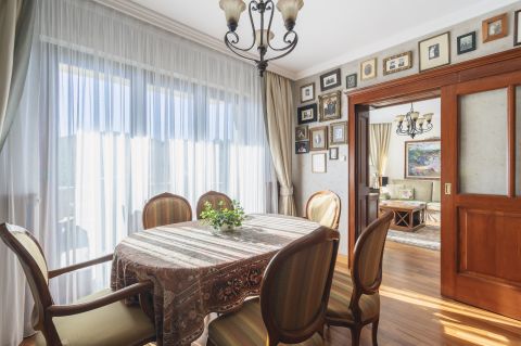 A földszinten az előszobából, külön is nyílik minden helyiség, a bal és a jobb oldali helyiségek és a külső formák tükörképei egymásnak. A ház központi részén a családi ebédlő, amelyből egyik irányba a konyha-kamra, a másik oldalon a családi nappali és TV szoba, amelyet hangulatos kandalló választ el egymástól. Mindhárom térből kiléphetünk a napos és panorámás teraszra, ahonnan csodálhatjuk az elénk táruló természetvédelmi területet, a kilátókat és akár a naplementét. Ezen a szinten található még egy dolgozó/vendégszoba és ehhez közvetlenül kapcsolódóan egy fürdőszoba W.C.-vel.