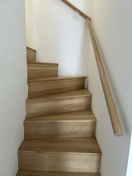 Az emeletre felérve három napfényes, tágas szoba kapott helyet, valamint egy fürdőszoba.