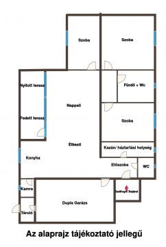 - Lakótér: nappali + konyha-étkező (43 m²), 3 külön szoba