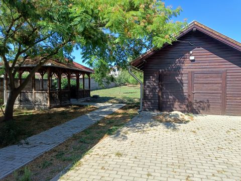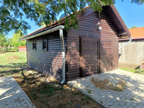 -Garázs: 24 m²-es, fából készült szerkezet beton aljzattal és bevezetett vízzel.
