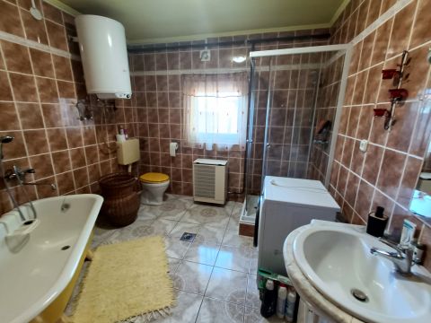 -Fürdőszoba: 9 m², tágas, mennyezetig csempézett, járólap burkolatú. A meleg vizet gázbojler biztosítja.