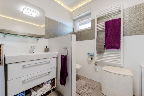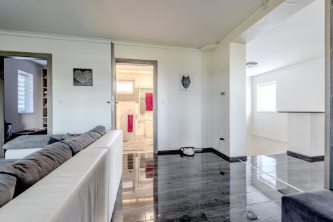 Az emeleti szint teljesen külön lakórészként funkcionál, így ideális nagycsaládosoknak, összeköltözőknek vagy akár otthoni vállalkozás kialakítására is.