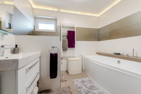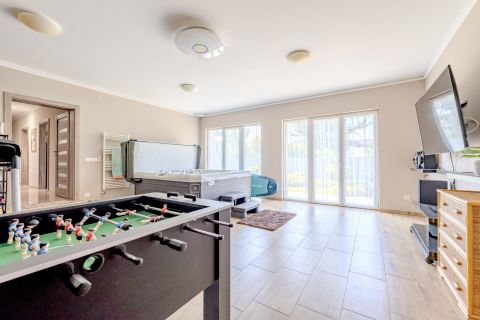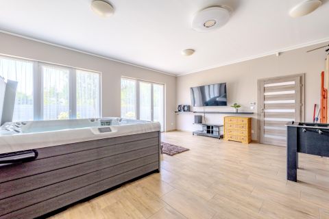 A tágas közlekedőből nyílik a konditerem, ahol a jakuzzi igazi wellness élményt nyújt a mindennapokban.