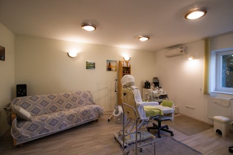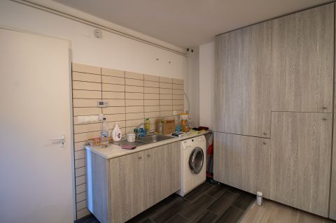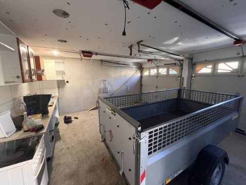 Itt kapott helyet egy 28 m²-es garzonlakás ( 2015-ben készült el. - szoba, előszoba, fürdő) és egy dupla garázs ) Így akár külön lakrész, vendégház, iroda vagy üzlethelyiség is lehet.