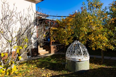 A kertben pedig egy hangulatos, 28 m²-es pavilon kemencével várja a baráti összejöveteleket és családi grillpartikat!
