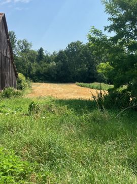 A telek hátsó része művelt, jelenleg bevetett terület, a legvégében pedig egy fás rész található. A telek egy hátsó gyalogútnál ér véget.