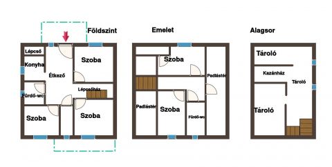 Fontos előny, hogy az emeleti rész nem tetőtér jellegű, nincsenek ferde falak, teljes értékű helyiségek állnak rendelkezésre.