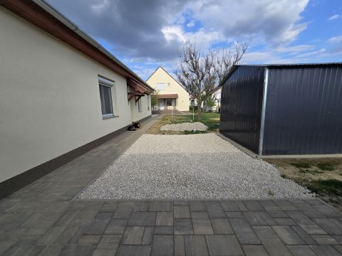 Az ingatlan egy 800 m²-es, parkosított, gondozott telken helyezkedik el, ahol minden adott a kényelmes mindennapokhoz és a pihenéshez.
