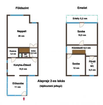 - nappali + két szoba ( 26, 19.5 és 12 nm)