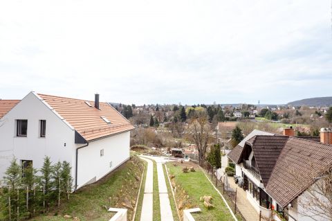 Pesthidegkút-Ófaluban, csendes, forgalomtól mentes zsákutcában kínálunk eladásra egy panorámás, új építésű családi házat,