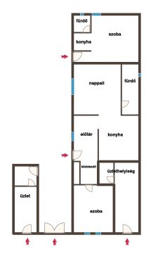 22 m²-es hátsó lakás (külön bejárattal) helyiségei: