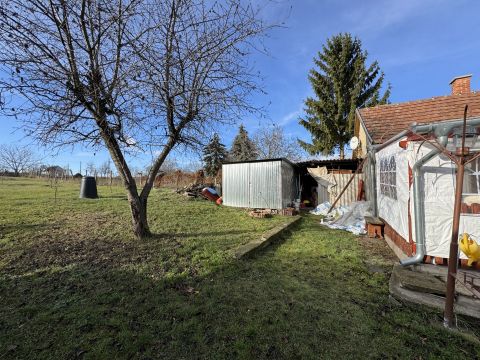A telek rendezett, Alumínium kerítéssel, kapuval. Egy fáskamra, és egy alumínium garázs is található a telken, ami 1209m-es, két utcára nyíló, így akár ezt a házat is lehet bővíteni, de akár megosztva, még egy ház építhető a hátsó utcafrontra.
