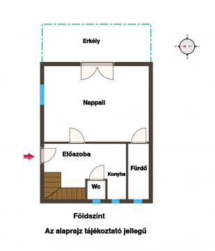 * alsó szint: szoba, abból nyíló kádas fürdő, konyha, külön WC