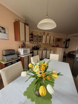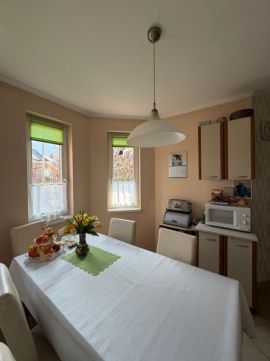 - tágas, napfényes konyha-étkező