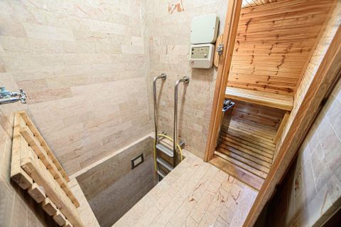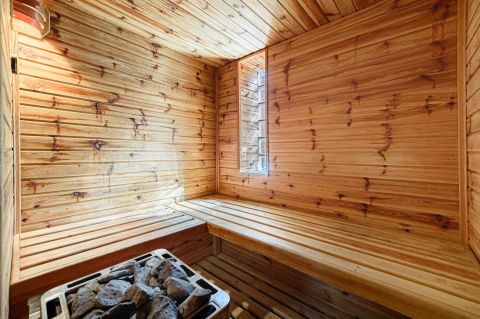 A mindennapi feltöltődést a szauna és a merülőmedence biztosítja. A körbefutó, fedett terasz ideális nagyobb társaság fogadására, az épített kemence és a grillsütő pedig élménydús, hangulatos sütögetések színtere lehet.