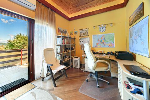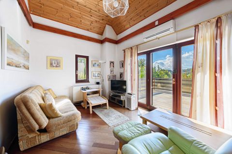 Két hálóhoz saját erkély tartozik, ahonnan lenyűgöző kilátás nyílik a Pilisre.