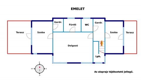 A hangszigetelt, széles lépcső egy jól átgondolt emeleti térbe vezet, ahol: