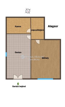 Alagsor: házon belülről is megközelíthető, nagy méretű garázs, tüzelőtároló/mosókonyha, kamra; üzlethelyiség, műhely vagy iroda kialakítása is lehetséges