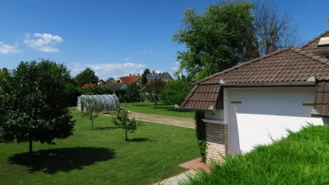 Az egész telek parkosított, melyben többek között sziklakert, halastó, gyümölcsfák, konyhakert, Petanque-pálya, épített grill, mellette kerti pavilon 8 ülőhellyel, központi asztallal, állítható tűzmagassággal, gránit fedlapokkal is megtalálható.