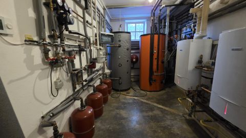 Fűtés: az alagsori központi kazánban 2db 45kW-os kondenzációs BOSCH gázkazán működik, 12m2-es napkollektoros hálózat rásegítésével, VIESSMANN szabályozó rendszerrel. Egyedileg szabályozható a padlófűtés a ház helyiségeiben, az épület fűtése így gazdaságosan irányítható. A melléképületekben és garázsokban radiátoros fűtés van. A 2 teremgarázshoz a lejárat fagyveszély ellen elektromos fűtőszálakkal védett. A napkollektor által termelt hő az úszómedence vizét is melegíti. Csatlakozópont van kiépítve napelemes rendszerhez.