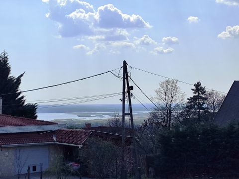 A teraszról élvezhető a Velencei-tó panorámája.