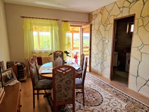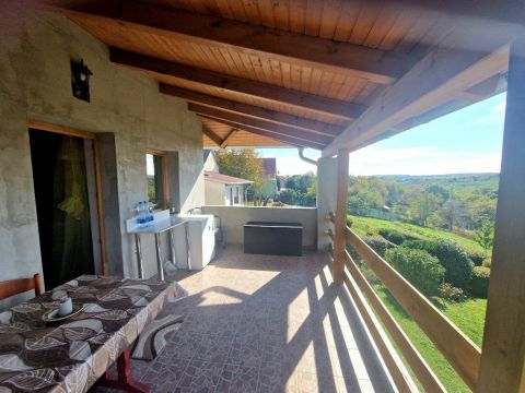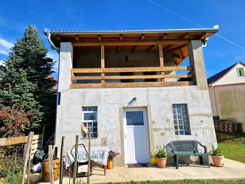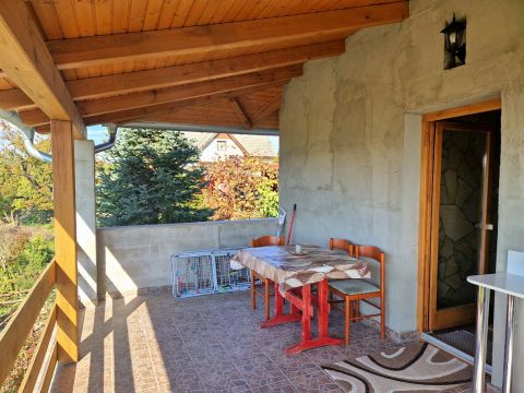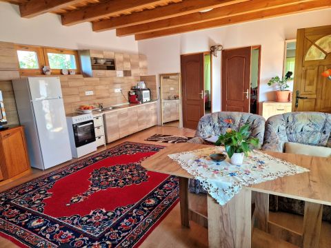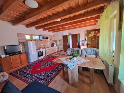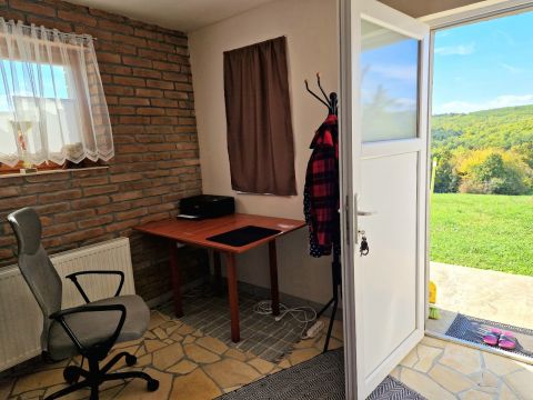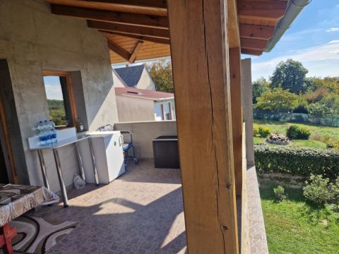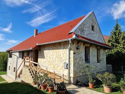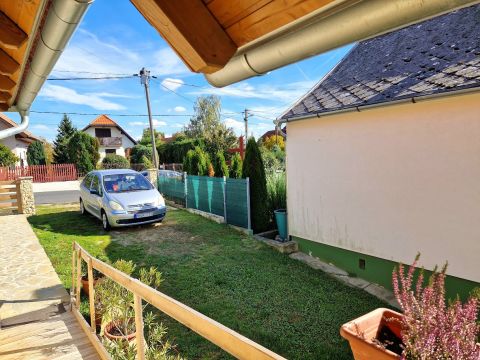 A téglaépítésű, cserépfedésű házban 2 szoba, egy hatalmas nappali + konyha + étkező van tágas, nyugati fekvésű terasszal.