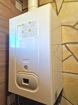 A ház fűtése fali gáz-cirkó kazánról történik. Kéményt kialakítottak, hogy akár kandallót, cserépkályhát is lehessen rakatni.