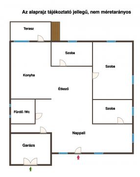 - tágas amerikai-konyhás nappali, 3 külön nyíló hálószoba