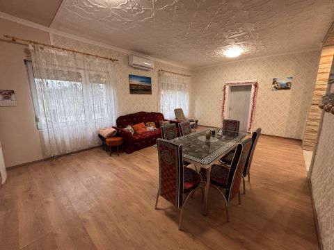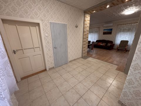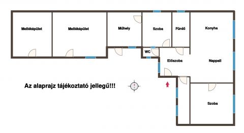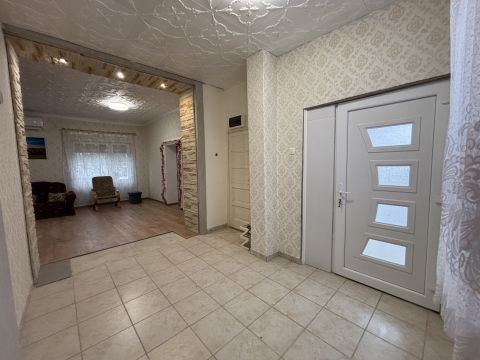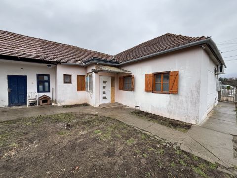 A vegyes falazatú (vályog + tégla) ház korszerű, jól élhető elosztással rendelkezik: