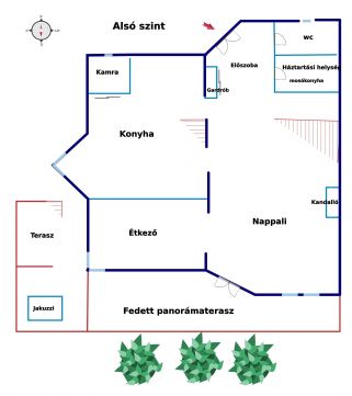 - utcafronttól meredek térkövezett felhajtó a garázshoz, - autóval történő megközelítés biztosított