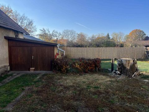A kert végében található egy zárt könnyűszerkezetes garázs is és egy kis fészer.