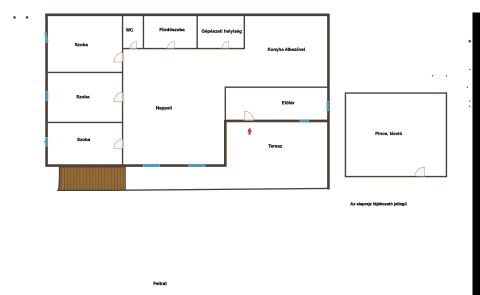 Az ingatlan beton alapra épült, vegyes falazatú, cserép tetős. Három hálószoba, nagy méretű nappali, kádas és zuhanyzós fürdőszoba, külön wc, gépház, nagy méretű beépített konyha étkezővel és egy előszoba található benne. A fűtést vegyes tüzelésű kazán biztosítja, radiátoros hőleadással, fa és műanyag nyílászárók gondoskodnak a jó hőszigetelésről. Külső lejáratú pincéje ca. 20m2 alapterületű, 2m belmagassággal tágas, száraz, jól szigetelt.