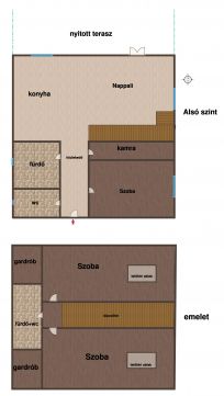 Alsó szinten 1 szoba
