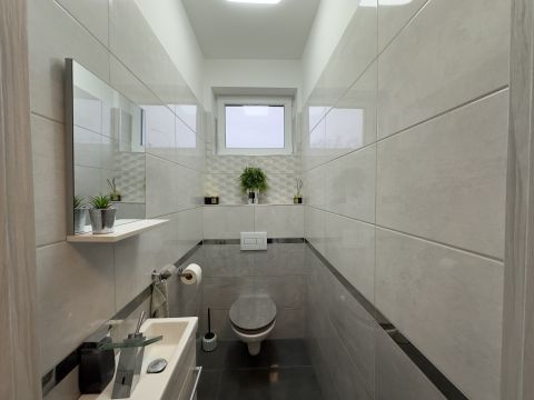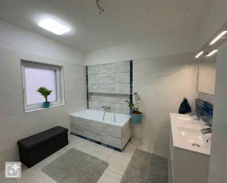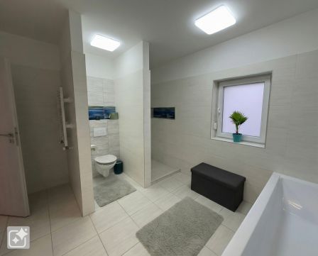 - Fürdőszoba káddal, épített zuhanyzóval, dupla mosdóval és WC-vel