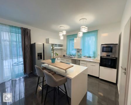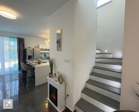 A ház prémium minőségű burkolatokkal, műanyag nyílászárókkal, homlokzati és tetőszigeteléssel, a hálószobákban elektromos redőnyökkel és jogilag új építésű státusszal rendelkezik.
