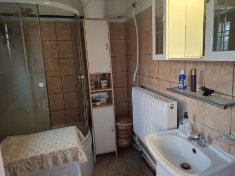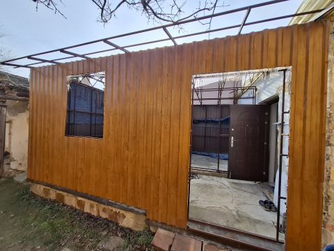 A házba lépve az első, ami szemet szúr, az a bejárat előtt megkezdett télikert építése. A fém szerkezet és hullámlemez oldalak már állnak félig, így az új tulajdonosnak izgalmas lehetősége nyílik az épület további alakítására. Bár a külső vakolat kopottas, és megérett a felújításra, ez csak részét képezi annak a rengeteg lehetőségnek, amit az ingatlan rejt.