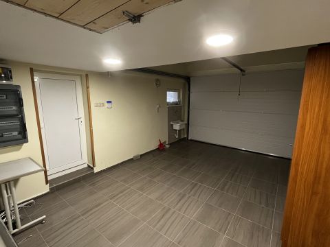 A meghirdetett ingatlanhoz tartozik egy 22 m² -es garázs, amely átjárható a házon keresztül. A garázs részéhez tartozik egy gépház és egy tároló helyiség is.