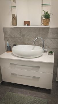 Teljes burkolat csere is történt, új fürdőszoba kialakítással.