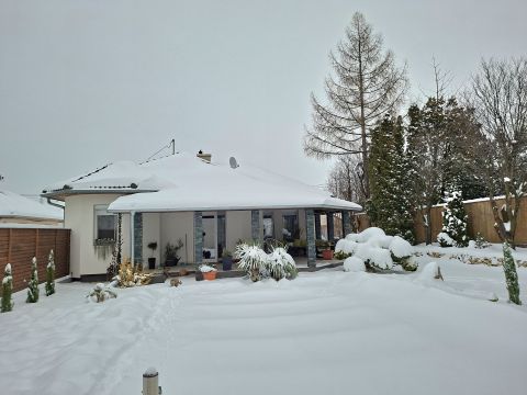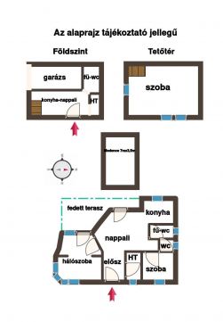 A másik ház 78 m2- es 20 m2- es garázs, konyha, nappali, Fürdő-wc, háztartási helyiség valamint a tetőtérben 35 m2- es egy légterű szoba kialakítással.
