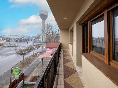 Újfehértó Béke téren, felújított, 3 szintes, téglaépítésű, 3 szobás, konyha+étkezős, 3 jól bejáratott, folyamatosan működő üzlethelyiséggel kialakított lakóház, 623 nm-es telken eladó!