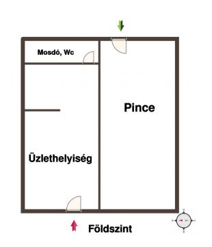 - Földszinten: 1 üzlethelyiség, raktár, pince