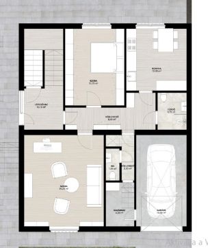 Saját, a házba belső kapcsolatú garázs, ház előtt 2 db kocsibeálló