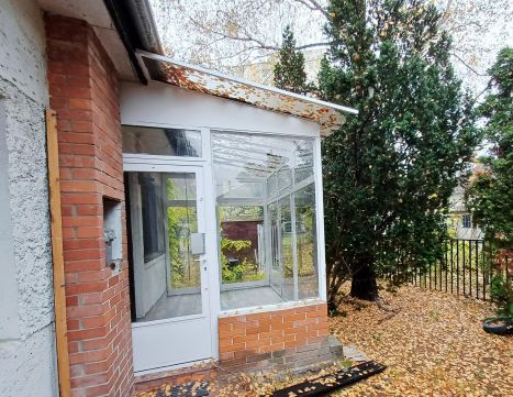 A házhoz tartozik egy kb. 30 m²-es, külön bejáratú garzonlakás, amely előtt egy zárt veranda található. A garzon tökéletes lehet különálló lakrésznek, irodának vagy bérbeadásra.