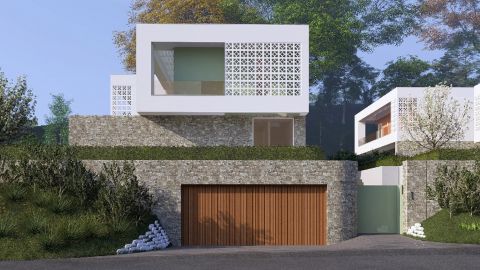 Baumit vakolt homlokzat kőburkolattal kombinálva
