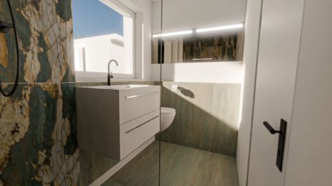 A felső szinten egy külön fürdőszoba WC-vel, valamint egy óriási hálószoba került kialakításra.