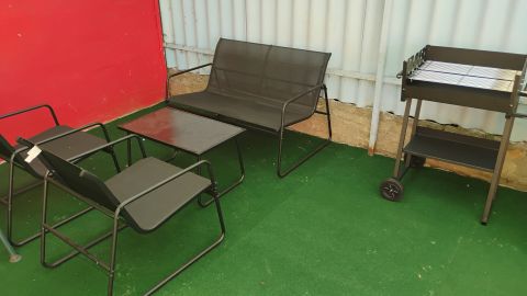 A három egységből álló sorház, középső részeként elhelyezkedő ingatlanhoz saját, kizárólagos kertrész, tároló, melléképület, valamint egy autó számára garázsbeálló tartozik.