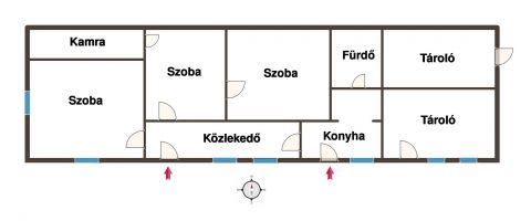 Helyiségek: 3 szoba, konyha, fürdő, kamra, közlekedő