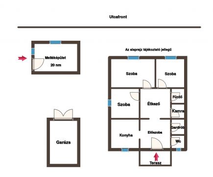 - különálló, 20 m²-es melléképület utcafronti bejárattal,