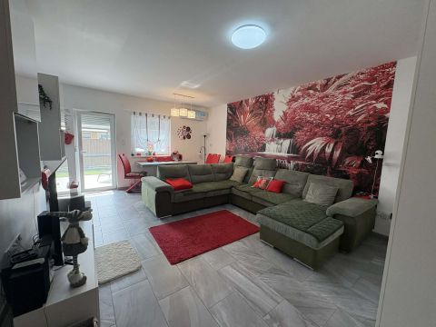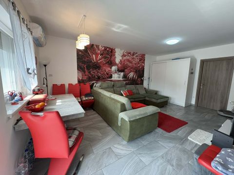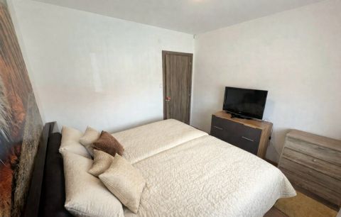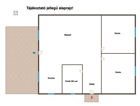 Elrendezése praktikus: két szoba, amerikai konyhás nappali, fürdőszoba és terasz tartozik hozzá, mely a nappaliból közvetlenül megközelíthető. A teraszon elektromos napernyő került felszerelésre, így a nyári pihenés is kényelmesen megoldott.
